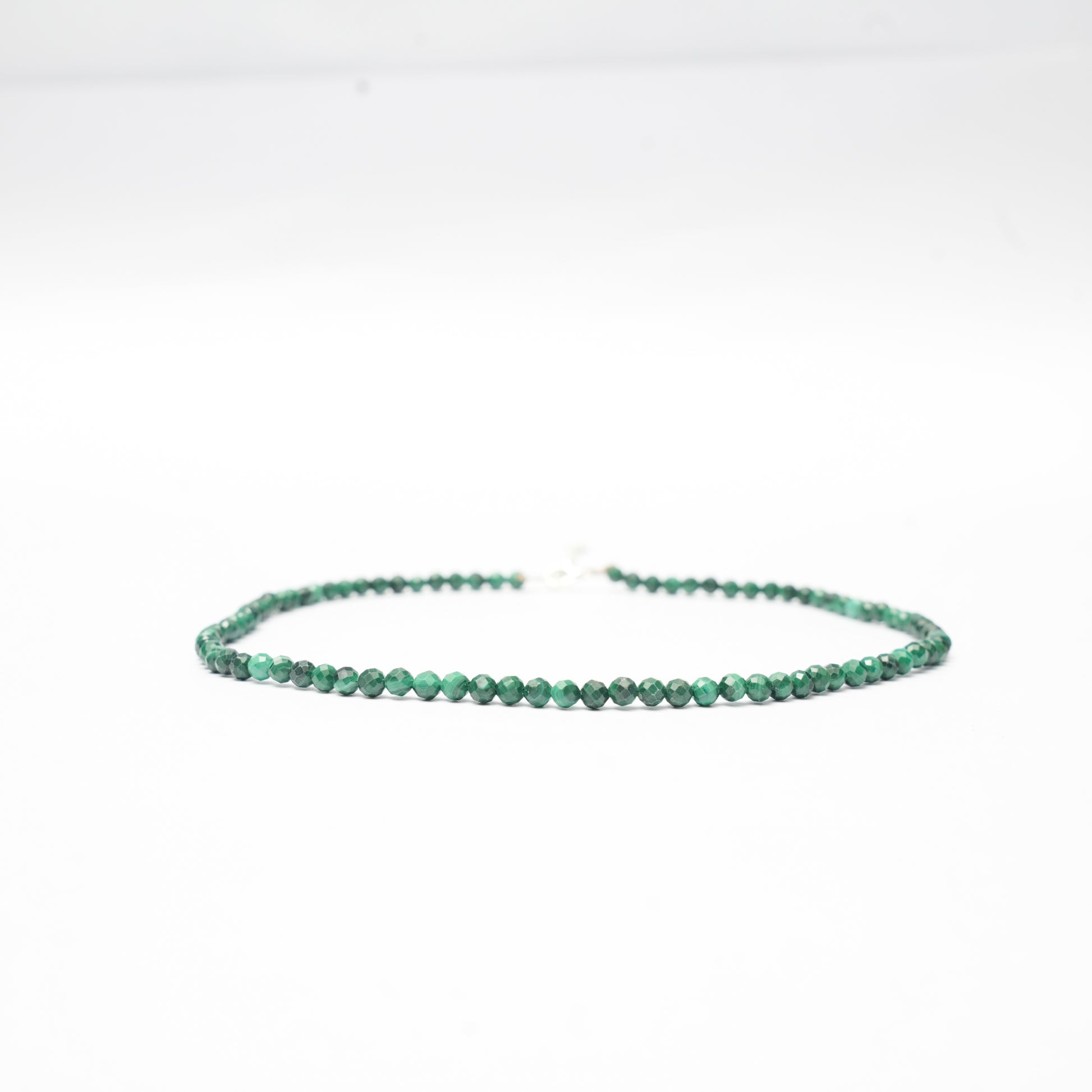 This elegant Malachite necklace is handcrafted with 4mm faceted natural Malachite gemstones, known for their deep green hues and protective energy. Each bead is carefully polished to create a radiant, dainty look perfect for everyday wear or layering.