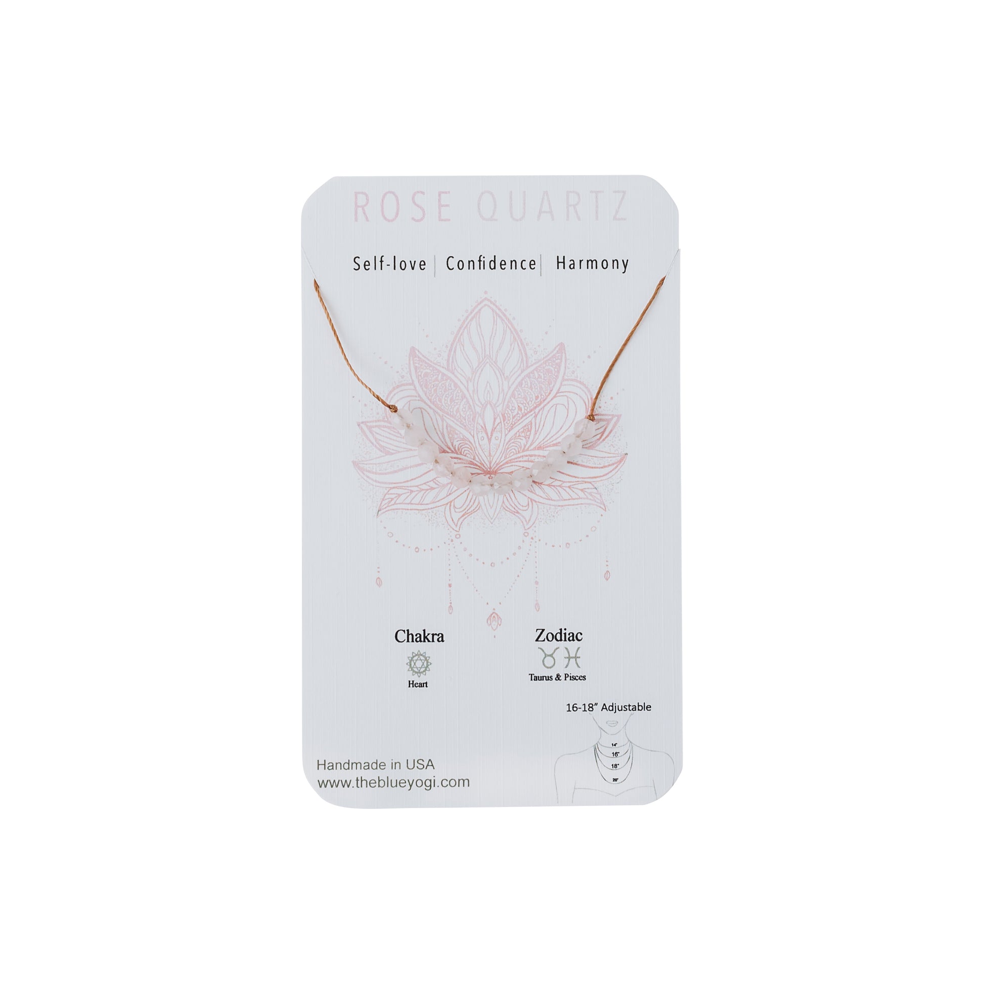 Casual, Minimal, everyday gemstone cord Necklace with adjustable Sterling silver lobster clasp Adjustable cord necklace 16”- 18” Made of Natural Gemstones. The Necklaces are simple and light weight. Each Necklace comes with a card with a watercolor Mandala art and healing properties of the crystal (as shown in photo) Each Necklace is handcrafted, and the gemstones are natural & unique so the order, size & shape of the gemstones will differ.