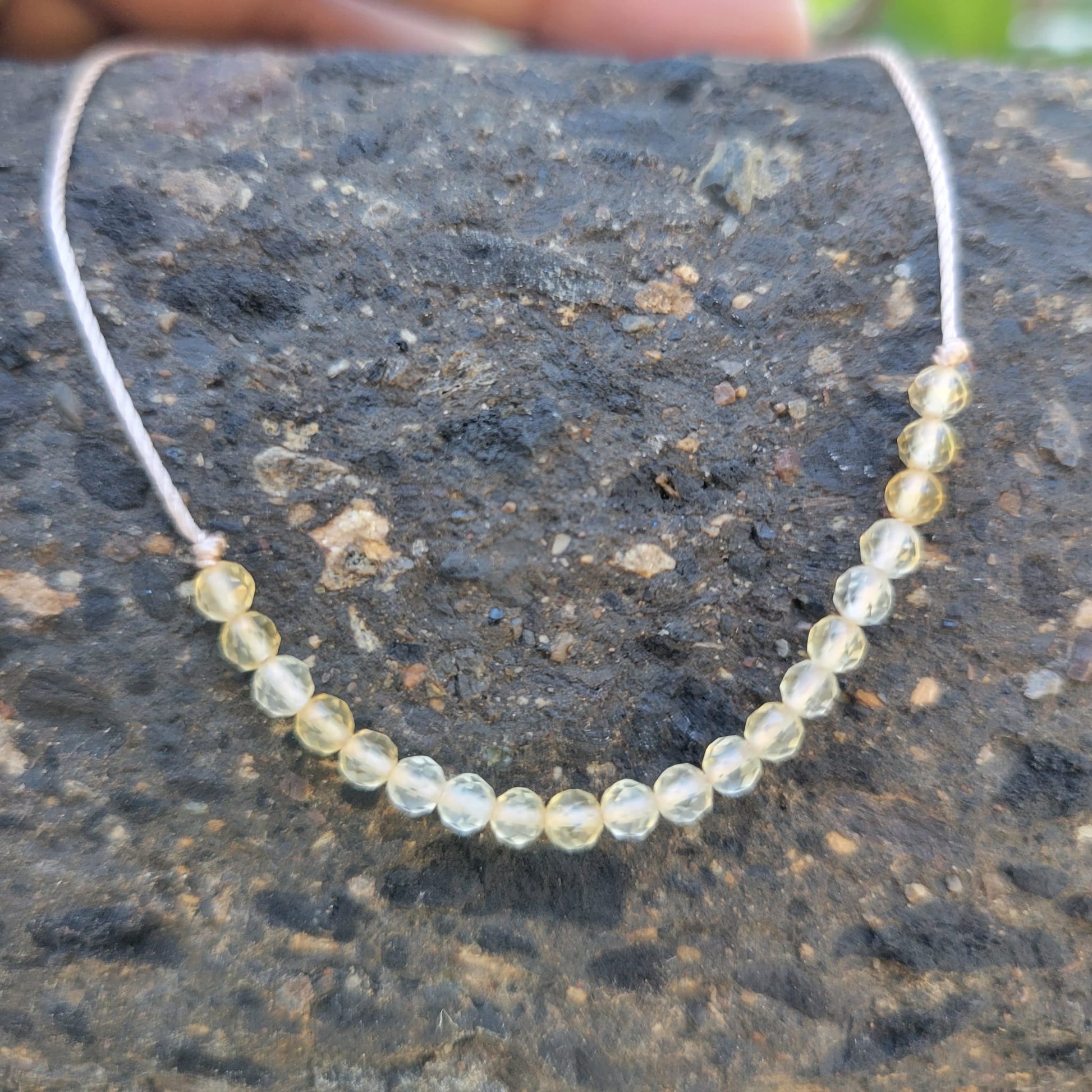 Casual, Minimal, everyday gemstone cord Necklace with adjustable Sterling silver lobster clasp Adjustable cord necklace 16”- 18” Made of Natural Gemstones. The Necklaces are simple and light weight. Each Necklace comes with a card with a watercolor Mandala art and healing properties of the crystal (as shown in photo) Each Necklace is handcrafted, and the gemstones are natural & unique so the order, size & shape of the gemstones will differ.