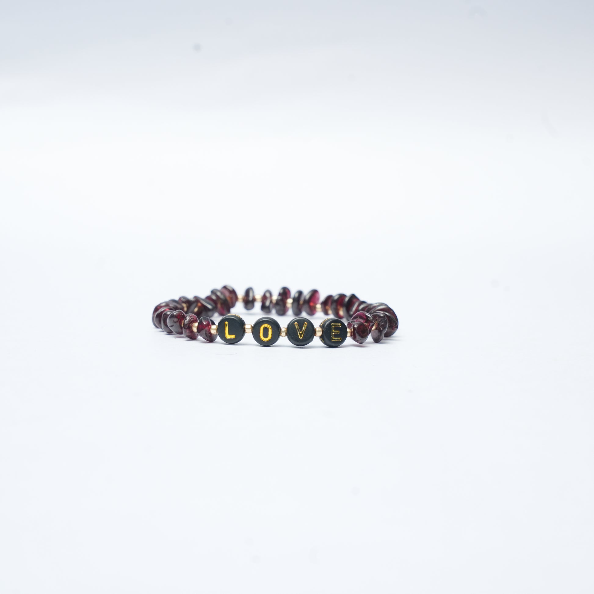 Open your heart to love and compassion with this inspirational stretch bracelet, handcrafted from natural Garnet chip beads. Known as a stone of passion, devotion, and strength, Garnet encourages self-love and deep connections. Accented with letter beads spelling LOVE, this bracelet is a meaningful reminder to carry love within and share it freely with the world. Comfortable and easy to wear, it makes a thoughtful gift for someone special or a cherished piece for your own collection.