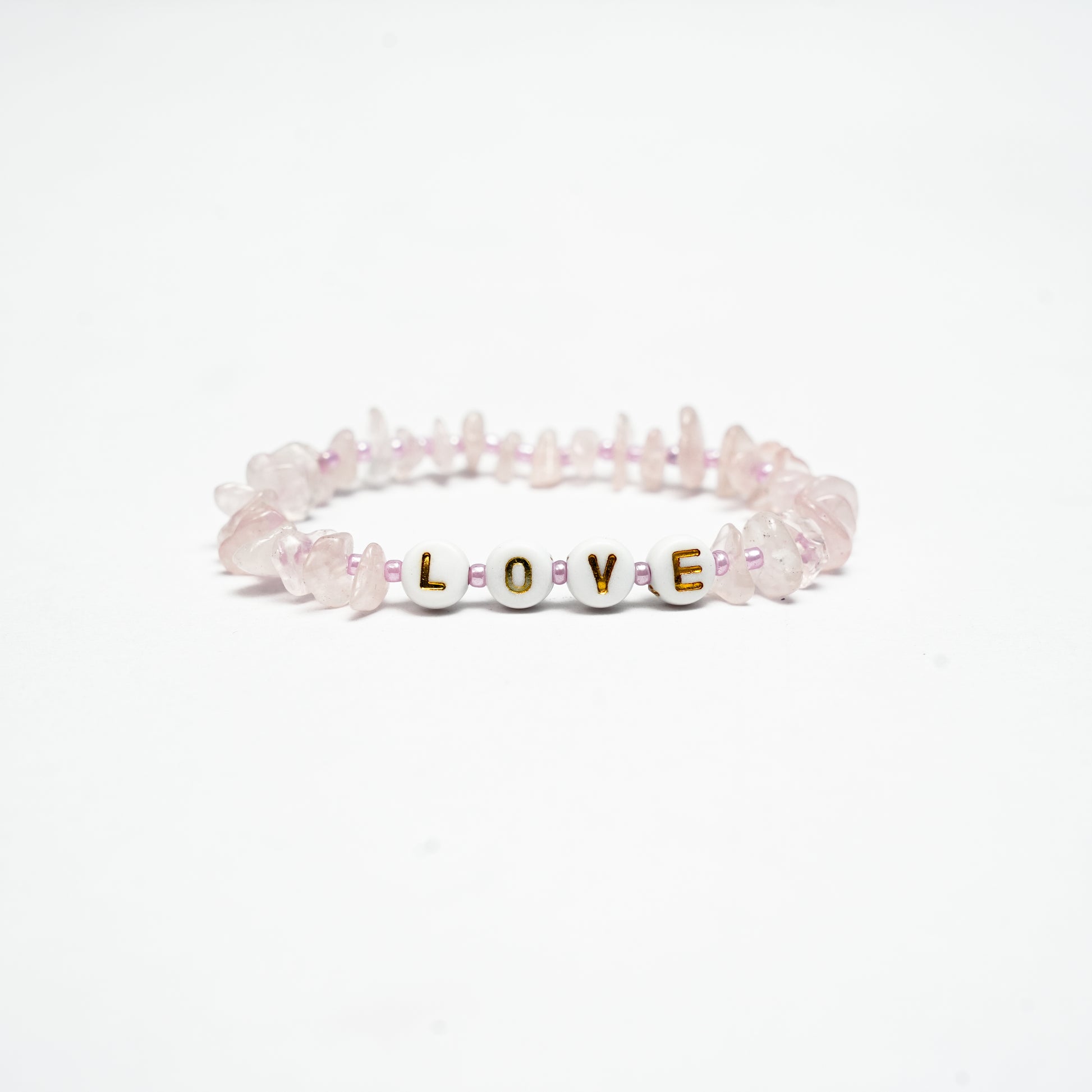 LOVE - Rose Quartz Chip stretch Bracelet for Kids ages 6 to 12