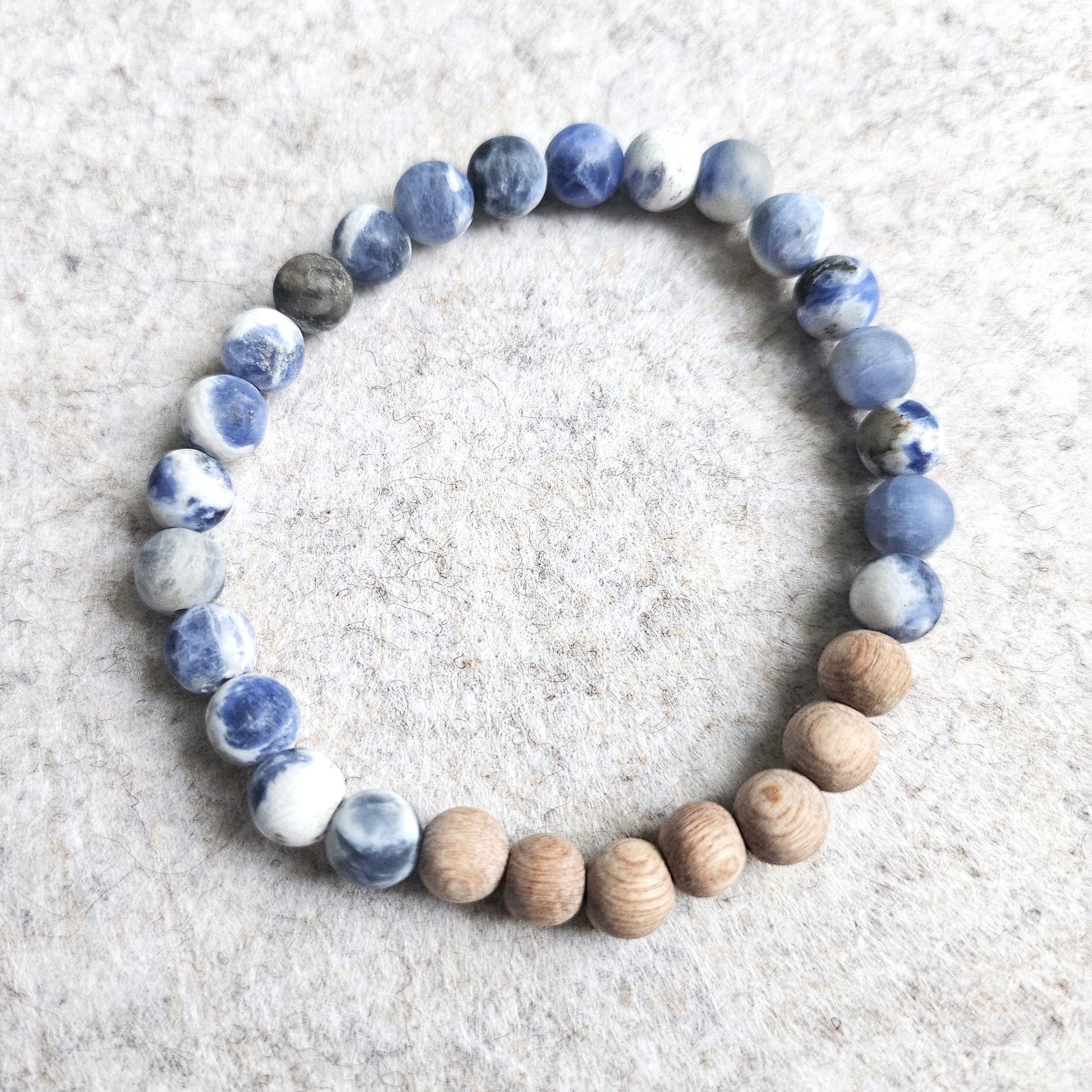 This Stretchy diffuser bracelet is made of 6mm Matte Natural Sodalite with unpolished rosewood beads. Turn this into an aromatherapy bracelet by adding a few drops of your favorite essential oils to the unpolished rosewood beads.