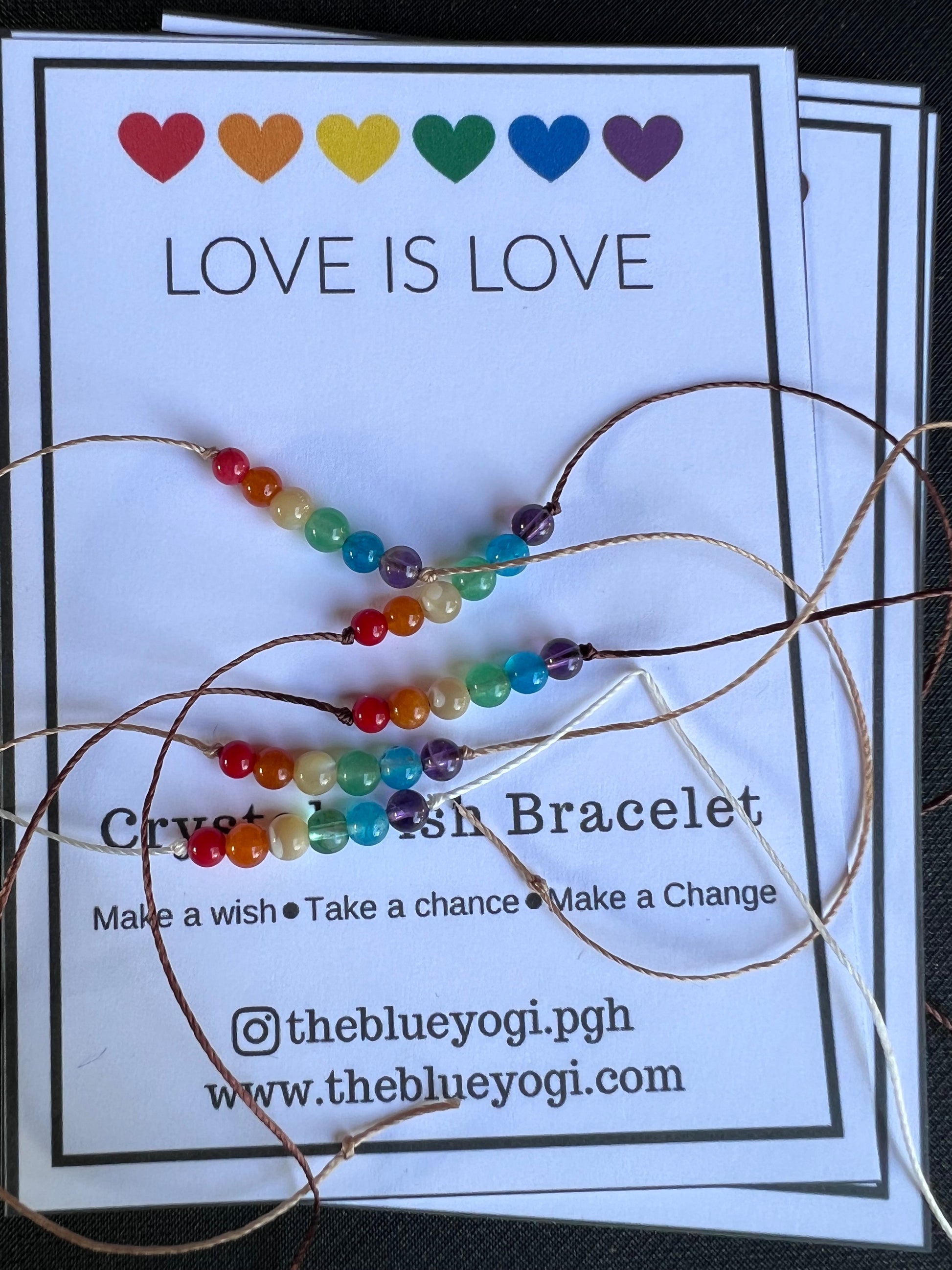 PRIDE - Gemstones Wish Bracelet ---Tie Closure---Quartz, Agates, Coral & Amethyst