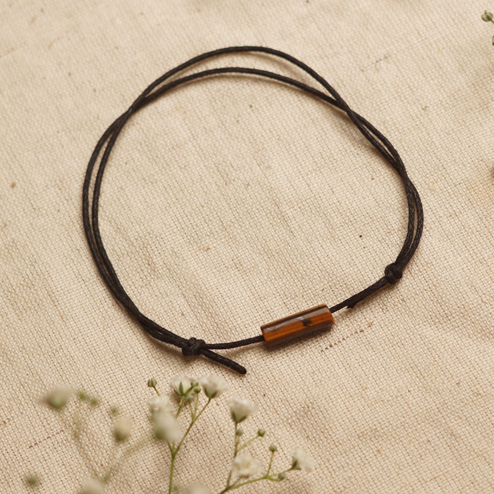 This Minimal Anklet is anklet made with Tiger's Eye bead and waxed cotton cord.