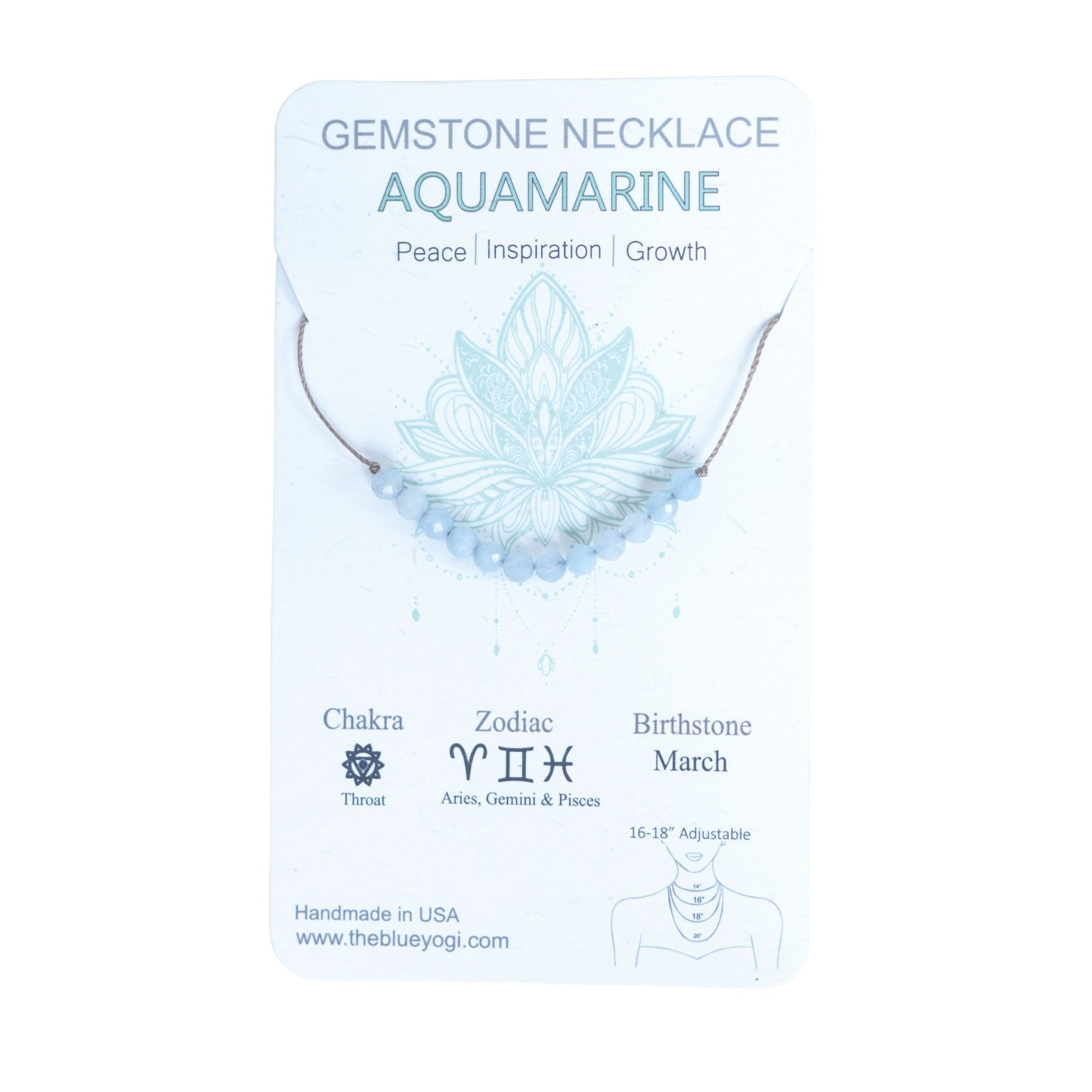 Casual, Minimal, everyday gemstone cord Necklace with adjustable Sterling silver lobster clasp Adjustable cord necklace 16”- 18” Made of Natural Gemstones. The Necklaces are simple and light weight. Each Necklace comes with a card with a watercolor Mandala art and healing properties of the crystal (as shown in photo) Each Necklace is handcrafted, and the gemstones are natural & unique so the order, size & shape of the gemstones will differ.