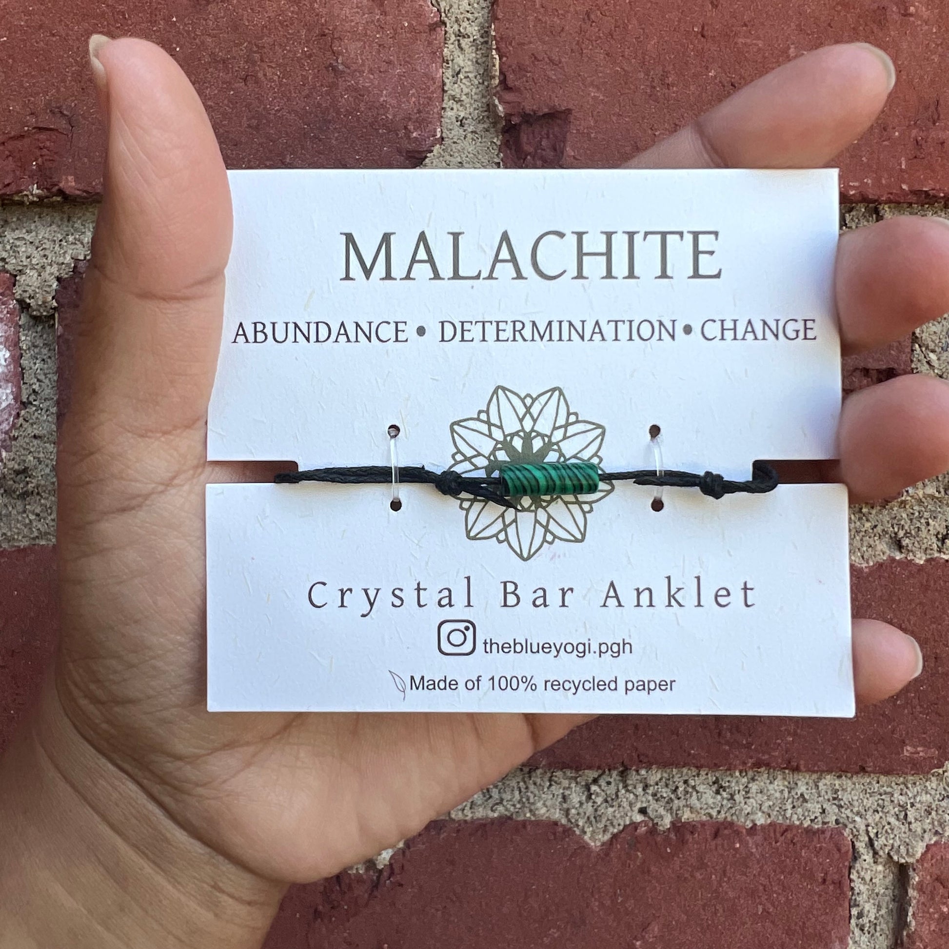 This Minimal Anklet is anklet made with Malachite and waxed cotton cord.