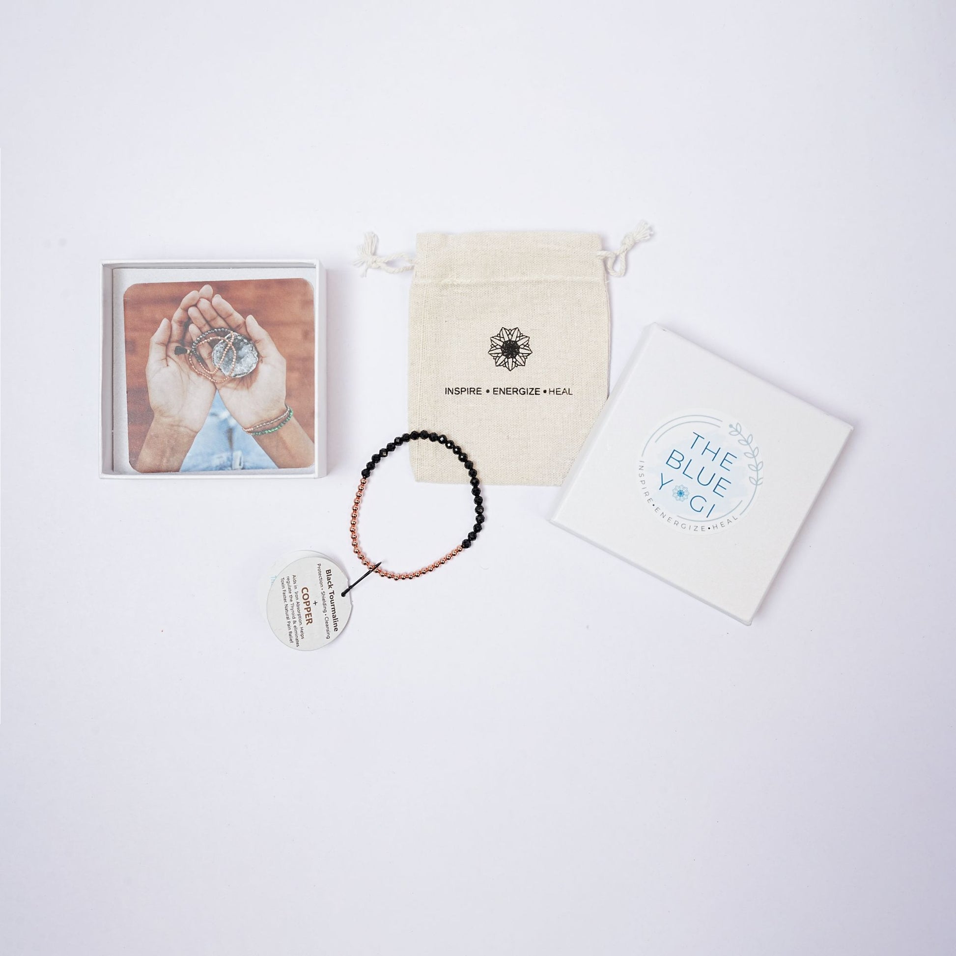 Every bracelet comes with a tag that lists the properties of the gemstones and copper along with an inspirational quote and is packed in a cotton pouch and a gift box
