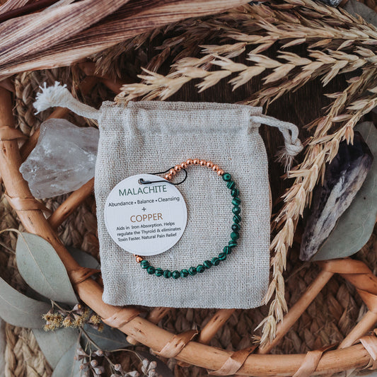 Dainty Malachite + Genuine Copper Bracelet