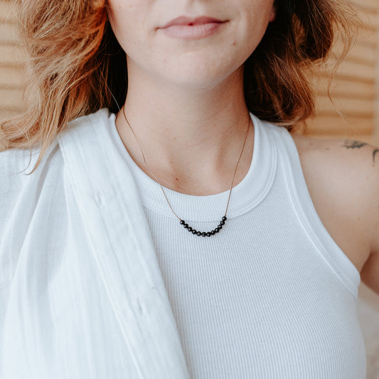 Dainty Black Tourmaline Cord Necklace