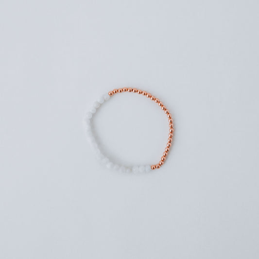 Dainty and Elegant Multi-Faceted Moonstone beads + Genuine and solid 3mm Copper Bead Bracelet - Stretchy and Stackable