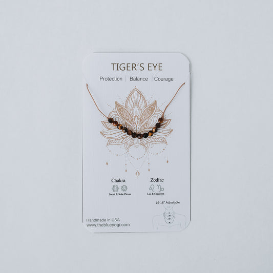Dainty Tiger Eye silver and cord Necklace